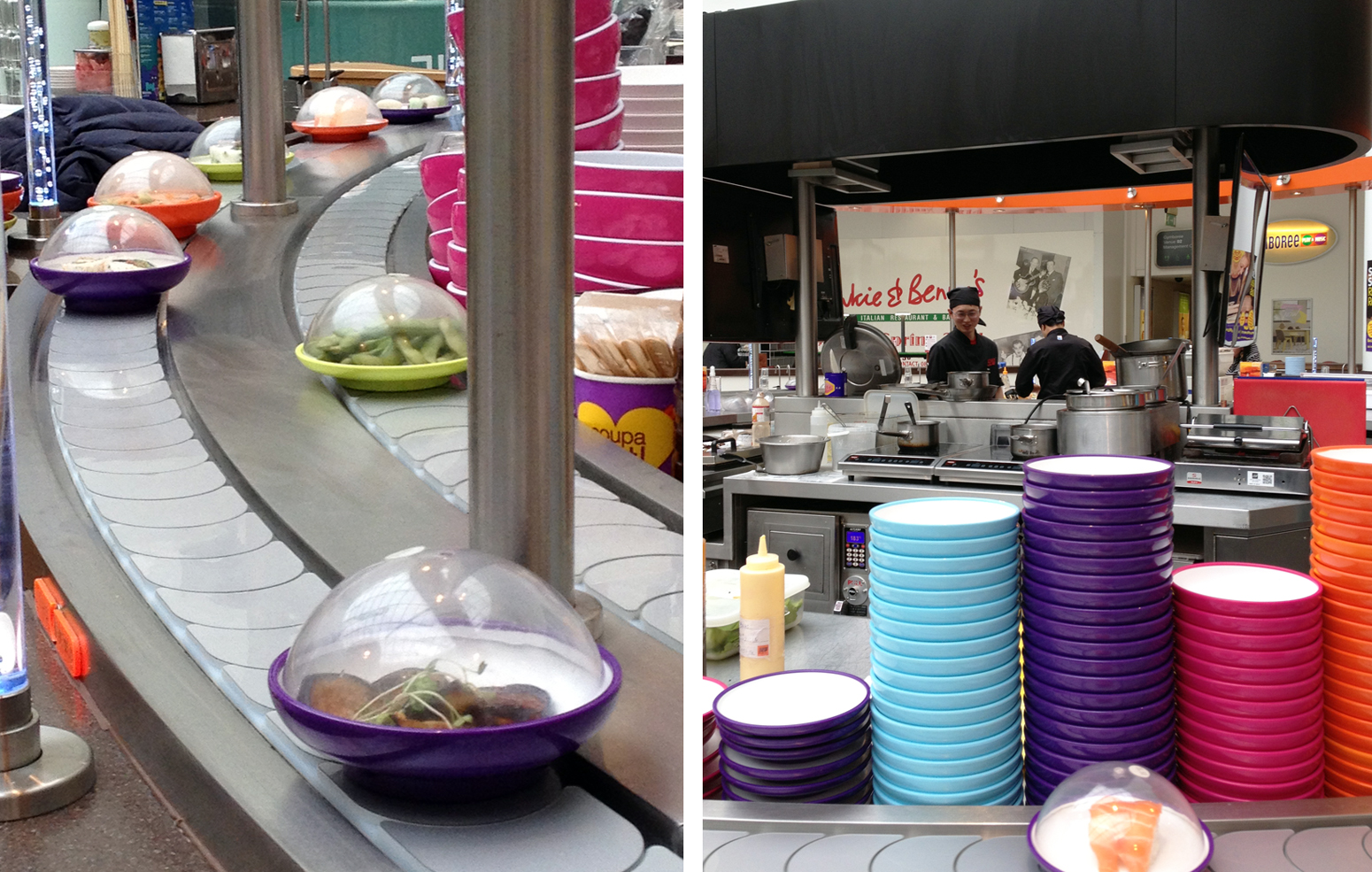 למעשה, הלונדונית הקטנטונת לא כ”כ גרועה, היא אפילו טובה, טובה מאד. לפני שבוע נתנה להורים בעלי העיניים הטרוטות כחצי שעה להשלים ארוחה בל’אנטרקוט, ואפילו העניקה שעות של חסד כאשר ישנה כמעט לאורך כל הטיסה חזרה ללונדון. יחד עם זאת, הבנו שאם לא נתאים את עצמנו להרגלי הלינה של הקטנה – אנו עשויים להפוך במהרה ל-Personas Non Grata במרבית מבתי העסק של הבירה. המסקנה איפוא ברורה: לונדון עם תינוקות לא בהכרח צריכה להיות ממלכה אפורה ולא מזמינה, כאשר בשלל מסעדות ה”כמעט פאסט פוד” שלה תוכלו להשלים ארוחה בתוך פחות מחצי שעה. לא, אין אנו מתכוונים ח”ח למקדונלד’ס או KFC (כבודן במקומן מונח).. יחד עם זאת רשתות כמו ווגמאמה המוכרת בהחלט הולכות להיות מנת שבטנו בתקופה הקרובה. כך קרה שאחרי שלוש שנים ויום עמוס במשרד הפנים הידוע לשמצה, מצאנו את עצמנו ליד המסוע הנע (ונא) של YO! SUSHI